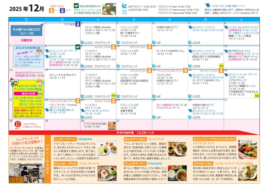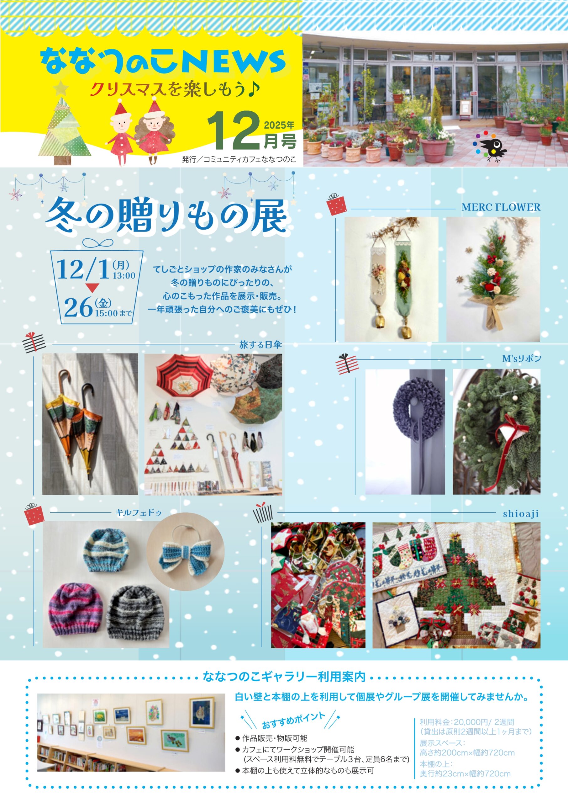 ななつのこニュース最新号店頭配布中です! ななつのこニュース12月号、店頭配布中です。 イベント情報やお得な情報がたくさん! ぜひ店頭で手に取ってご覧ください。 ななつのこニュースを置いてくださる、施設や店舗さまも募集しています。 HOMEへ戻る