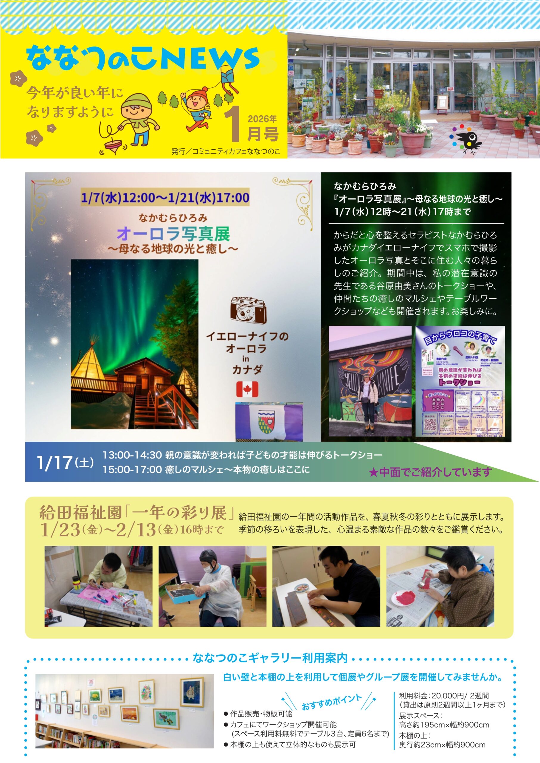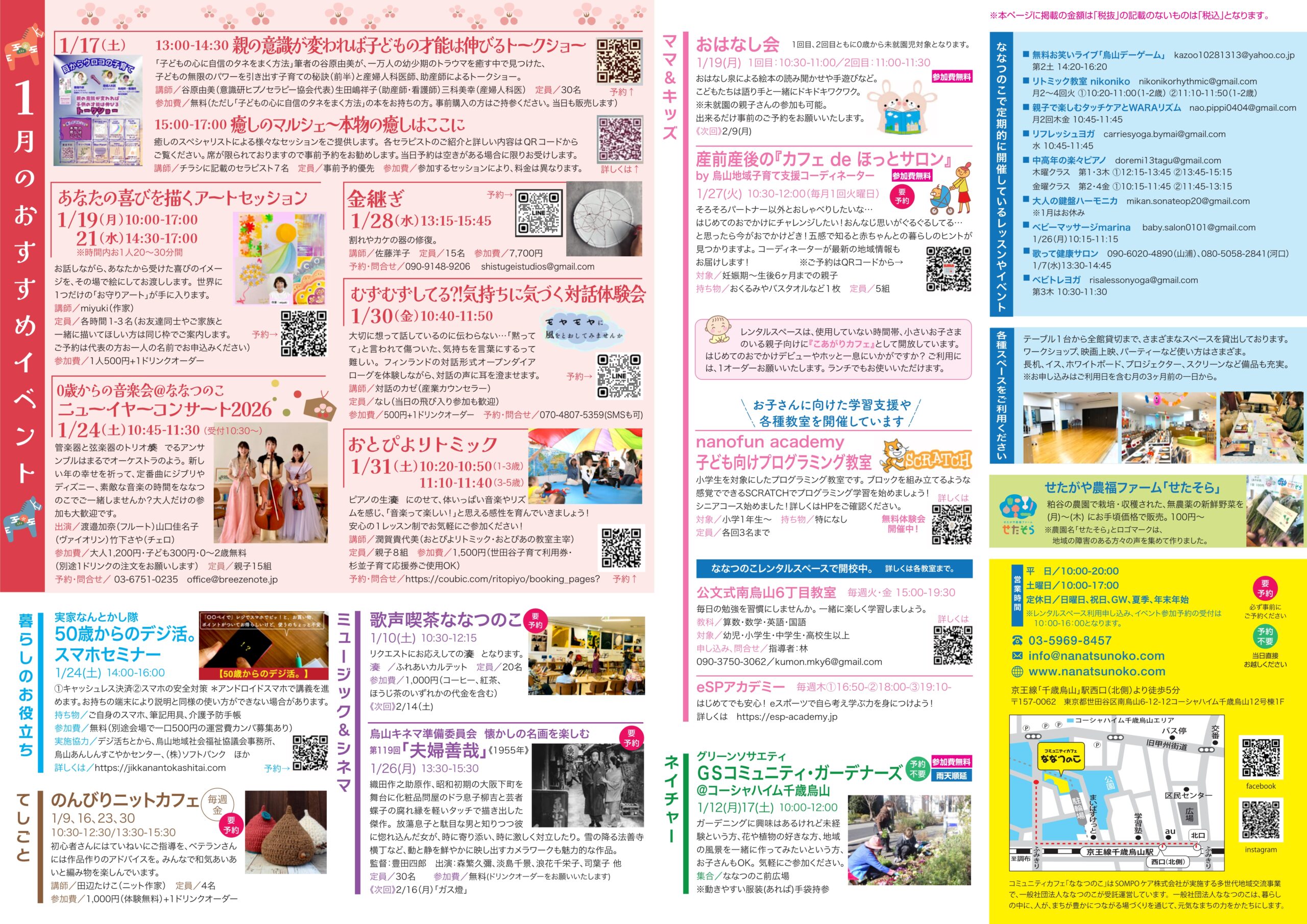ななつのこニュース最新号店頭配布中です! ななつのこニュース1月号、店頭配布中です。 イベント情報やお得な情報がたくさん! ぜひ店頭で手に取ってご覧ください。 ななつのこニュースを置いてくださる、施設や店舗さまも募集しています。 HOMEへ戻る
