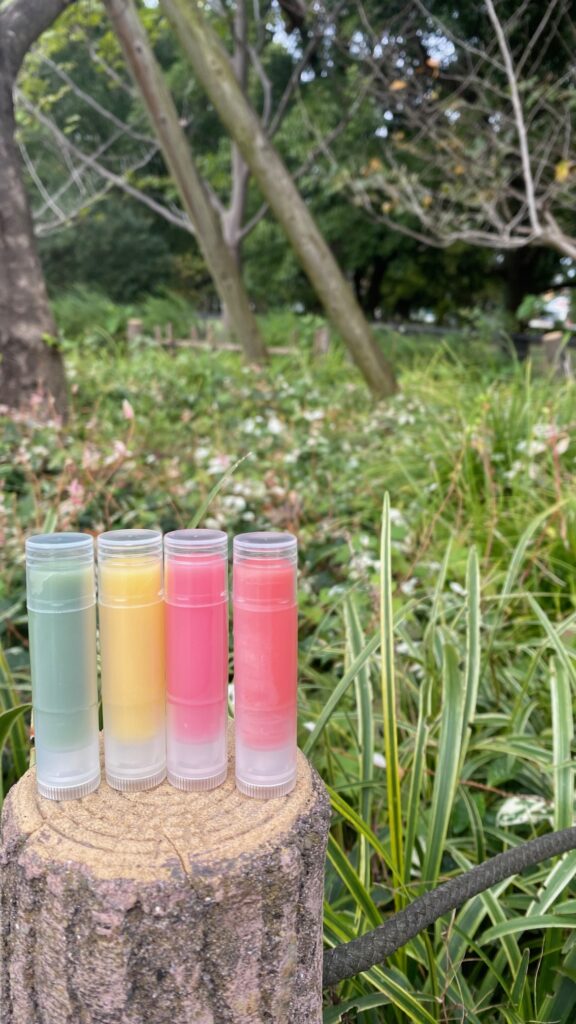 天然素材のミツロウとシアバターを使って香るリップクリーム(2本)とお部屋の空気を爽快!