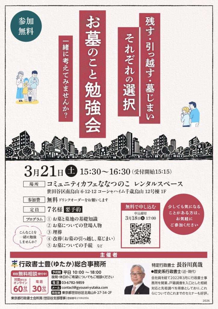 お墓のこと勉強会 3/21(土)15:30-16:30